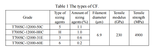 1、基础材料:增强体方面选择表面涂覆不同类型和用量的处理剂的碳纤维,树脂选择聚丙烯(PP)纤维和马来化处理的聚丙烯(MAPP)。