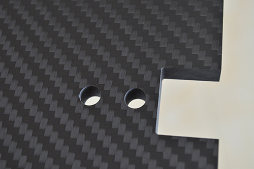 2、钻孔:之前我们也讨论过“碳纤维板钻孔导致分层的原因分析”,所以在给碳纤维板钻孔时需要选择合适的钻头,采用合理的钻孔方法。尽量选择整体硬质合金的钻头,如果钻头不够坚硬,自身磨损严重,同时还会损伤碳纤维板,造成分层甚至撕裂。