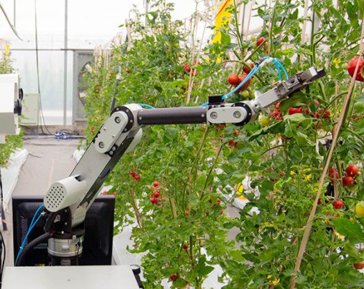 随着新农业生产模式和新技术的发展与应用,采摘机器人成为农业机器人的重要类型,有力推动着智慧农业的发展。一般的蔬果采摘机器人都由移动载体和机械手两部分组成。采摘机器人作业时直接与果实相接触的末端操作器固定于机械臂上,此时机械臂通过识别系统和智能操纵系统,在工作过程中不停地升降、旋转,根据果实的高度和距离进行自由调节。这种机械采摘在工作效率和果实损伤程度上都比人工采摘更具优势。