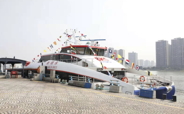 2019年11月14日下午,全球先进的碳纤维豪华高速客轮——“新顺水”号从顺德港澳城正式启航。