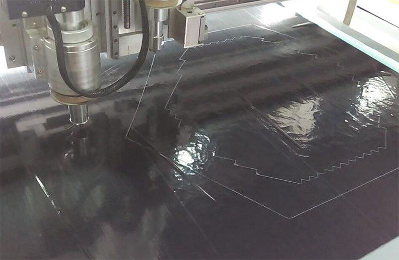 水切割也称水刀。水刀有加沙和无沙两种,切割碳纤维板采用加沙切割法。水刀切割固化的碳纤维板,且不能太厚。方法适合批量加工、操作简单但是对于水切机的质量要求高,劣质的机器容易出现毛边。