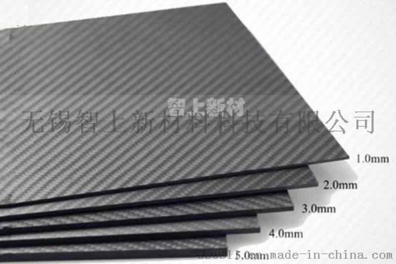 碳纤维板是将碳纤维预浸料根据强度等要求按一定方向排列使树脂浸润硬化形成的。常规的板材厚度有2.0mm、3.0mm、5.0mm、10mm等不同的尺寸,板材的厚度越大,需要层叠的碳纤维预浸料层数越多。根据预浸料中碳纤维丝束大小分为1K、3K、6K、12K等,一般常用3K居多,根据板材表面纹路可分为平纹、斜纹,根据表面处理效果可分为亮光、哑光,还可以根据要求进行雕刻加工。具体的加工过程包括对原材料的剪裁、铺层、固化、切割及后加工等程序。